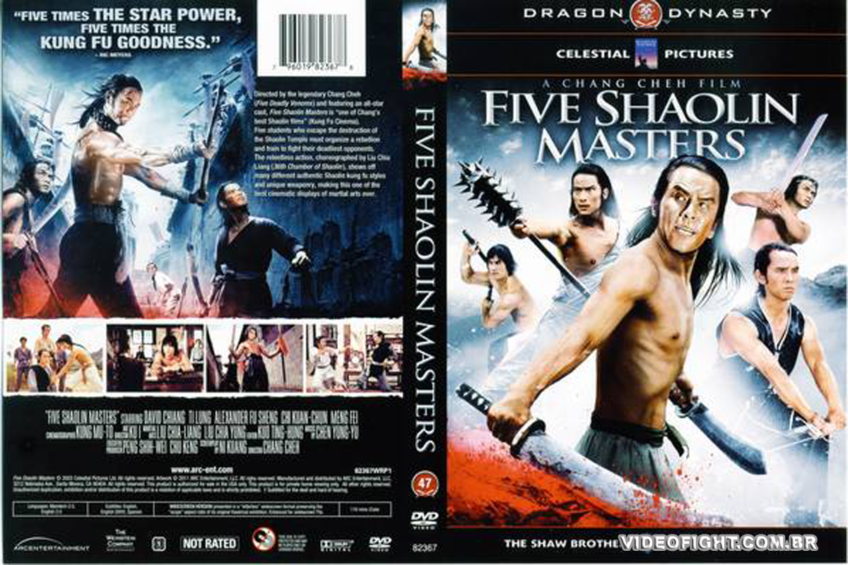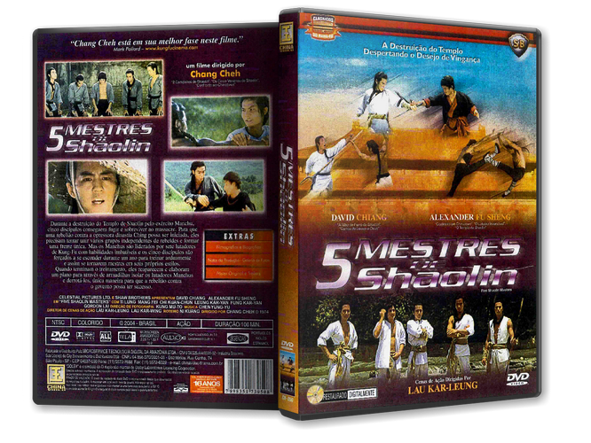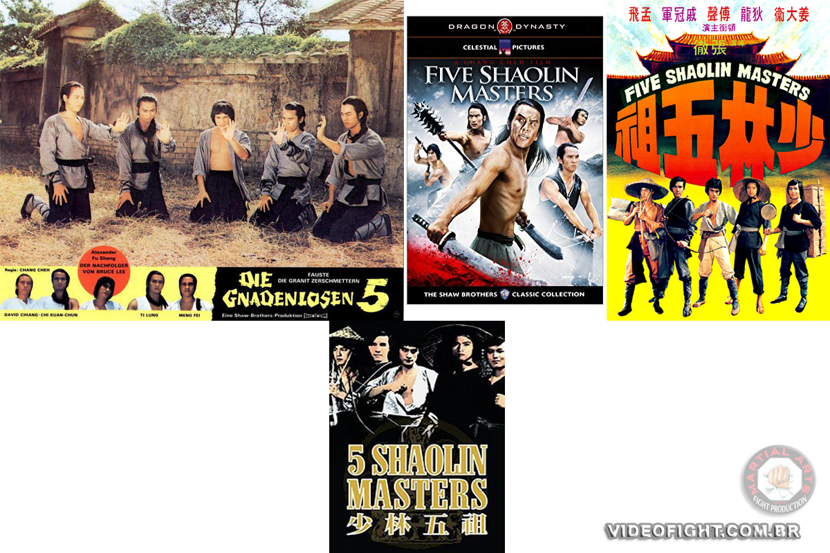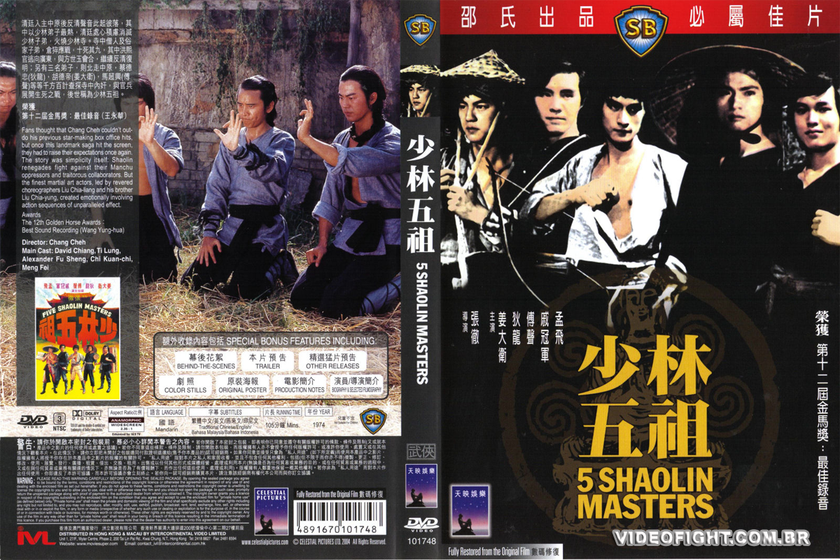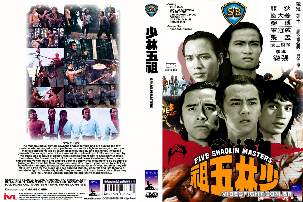 | SINOPSE: Durante a destruição do Templo de Shaolin pelo exército Manchu, cinco discípulos conseguem fugir e sobreviver ao massacre. Para que uma rebelião cotra a opressora dinastia Ching possa ser iniciada, eles precisam tentar unir vários grupos independentes de rebeldes e formar uma frente única. Mas os Manchus são liderados e os cinco discípulos são forçados a se esconder durante um ano para treinar arduamente e assim se tornarem mestres em seus próprios estilos.ELENCO: David Chiang Da-Wei … Hu Te-Ti Ti Lung … Tsai Te-Chung Alexander Fu Sheng … Ma Chao-Hsing Chi Kuan-Chun … Li Shih-Kai Mang Fei (1) … Fang Ta-Hung Leung Kar-Yan … Chien San Fung Hak-On … Chang Chin-Chiu Tsai Hung … Pao Yu-Lung, Flying Axe Johnny Wang Lung-Wei … Ma Fu-Yi Chiang Tao … General Chen Wen-Yao Li Chen-Piao … Kao Fung, Iron Face Gordon Liu Chia-Hui … Chang Yun [cameo] Lo Dik … Ma Chin-Yung Bruce Tong Yim-Chaan … Patriot killed by Chang Chin Chiu DADOS DO FILME: Título Original: Shao Lin wu zu |