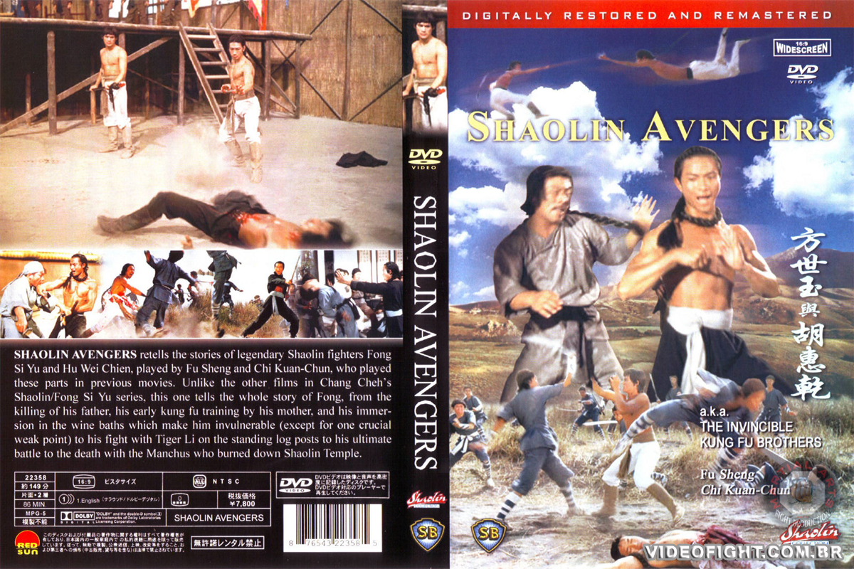 O herói do Templo de Shaolin, Fong Sai Yuk, passa por um cruel treinamento para dominar um estilo raro de kung-fu e, junto a seu irmão e um amigo, parte em busca de vingança contra o temido clã Wu Tang. Produção da Shaw Bros. que funciona de certa forma como uma continuação de “O Templo de Shaolin”, também de Chang Cheh, onde o astro Fu Sheng retorna na pele de Fong Sai Yuk (nas legendas a grafia muda), um histórico herói do período, ao lado de Chi Kuan Chun, numa parceria que rendeu vários filmes. Um dos vários clássicos do estúdio, “Vingadores de Shaolin” é especialmente memorável, mesmo que tenha tudo o que se pode esperar de um filme de Chang Cheh, em um ritmo mais acelerado que o habitual, com pouco papo e muito sangue e pancadaria. É cultuada até hoje especialmente pelo carisma de Fu Sheng (que, assim como Bruce Lee, morreu cedo e no auge da fama) e belo bizarro destino final de seu personagem. DADOS DO FILME