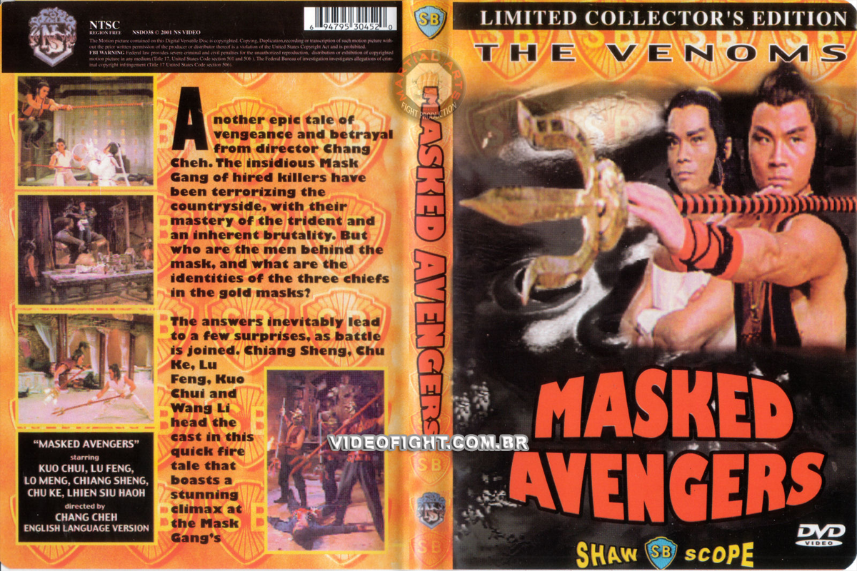Um grupo de artistas marciais chega a uma pequena cidade para investigar uma Gangue de assassinos mascarados que vem aterrorizando a zona rural utilizando a técnica do tridente para matar, roubar, realizar estupros e pilhagem. Mas quem seriam esses homens por trás das máscaras, e quais são as identidades dos três chefes com a máscara de ouro. Masked Avengers é mais um filme que consegue criar um grande impacto emocional. As coreografias das lutas são incríveis, embora o confronto final seja um pouco longo demais a audiência é mantida até o final para se descobrir quem é o líder da Gangue de mascarados.