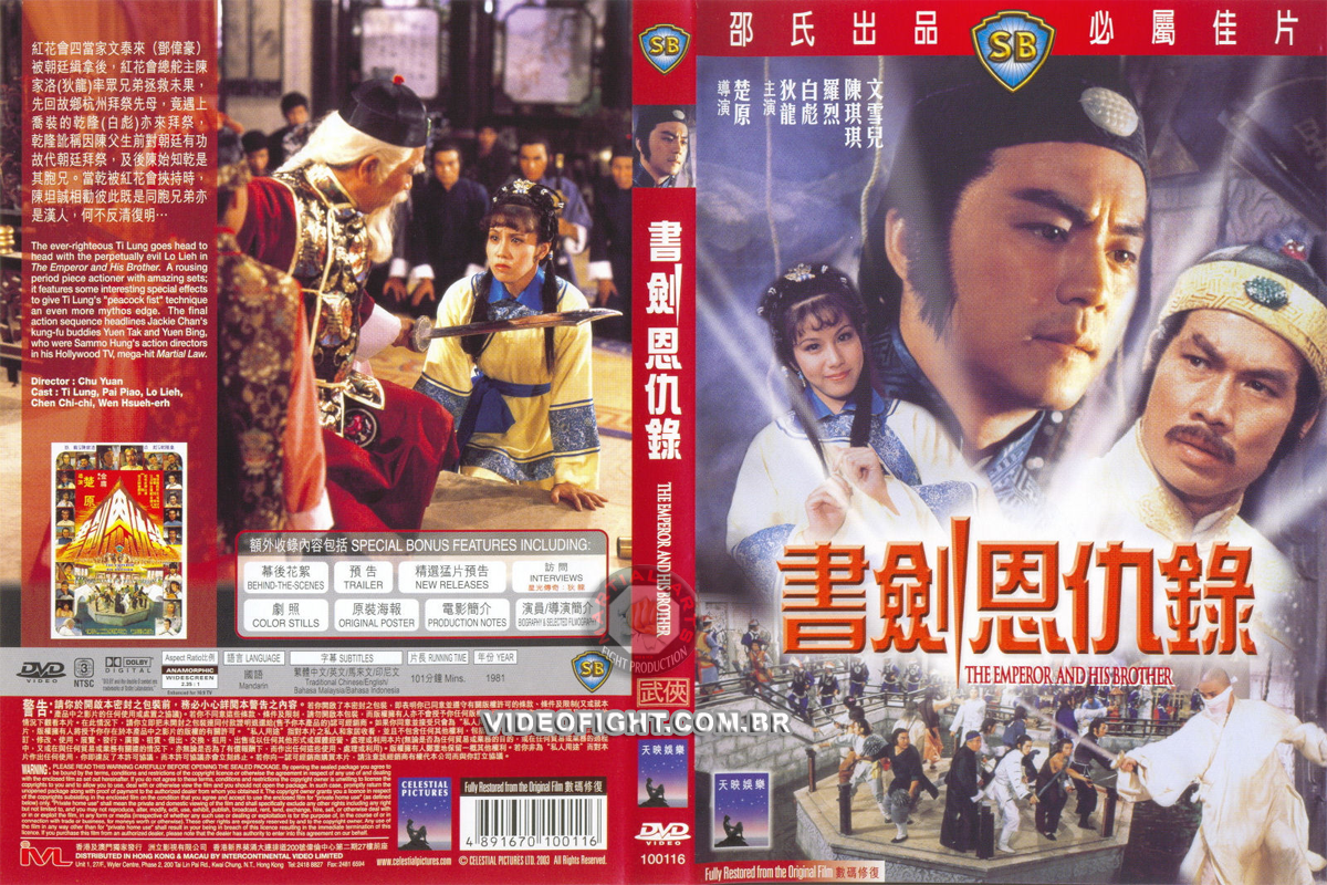 A sempre justos Lung Ti vai cabeça a cabeça com o Lieh Lo perpetuamente mal em “O Imperador e seu irmão”. Um pedaço actioner empolgante período com jogos incríveis, possui alguns efeitos interessantes especiais para dar a Ti Lung “punho de pavão”, uma técnica ainda mais vantagem mythos. As manchetes de ação finais seqüência de kung fu Jackie Chan Tak Yuen amigos e Yuen Bing, que eram diretores Sammo Hung ação em seu Hollywood “Martial Law” TV mega-hit.