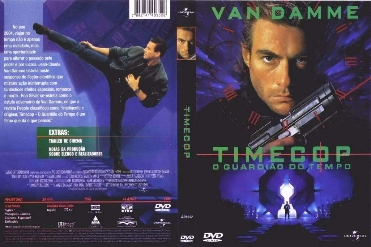 Descrição: No ano 2004, viajar no tempo não é apenas uma realidade, mas uma oportunidade para alterar o passado pelo poder e por lucros. Jean-Claude Van Damme estrela neste suspense de ficção científica que mistura ação ininterrupta com fantásticos efeitos especiais, romance e morte. Ron Silver co-estrela como o astuto adversário de Van Damme, no que a revista People classificou como ‘inteligente e original, Timecop – O Guardião do Tempo é um filme que dá o que pensar