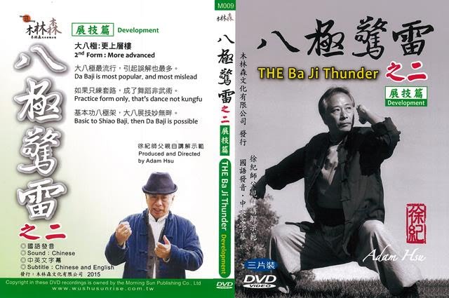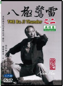 | Baji Thunder: Development #24897 3 DVDs, contained in one box “Development” Development Volume #1—100.03 minutes Explanation of Movements, the 24 “official” moves Da Baji is seen as a “representative” form, this version is more organic Elbow Strike: the famous form opening, hand washes head, some insights into GM Liu’s teaching Flat Strike: horizontal power, no retreat, angle changes. Each move is flexible yet true to its form. Punch Downward: adapting the body and strike. Examples of distance changes and more. Side Kick Back Fist Strike: strong lateral entering, leg projection. Power issuing in sequence. Opening: Famous spread palms, management of the limbs. Rotational power at the heart of a movement. Belly Punching: Timing attack with constant pressure. Every step should “advance” your argument. Push Window Levels training, change angles, pressure to enter unchanged. Lift Window: Upward controlling of the elbows, breaking in through the enemy’s defense. Development Volume #2—46:20 Development Volume #3—117:08