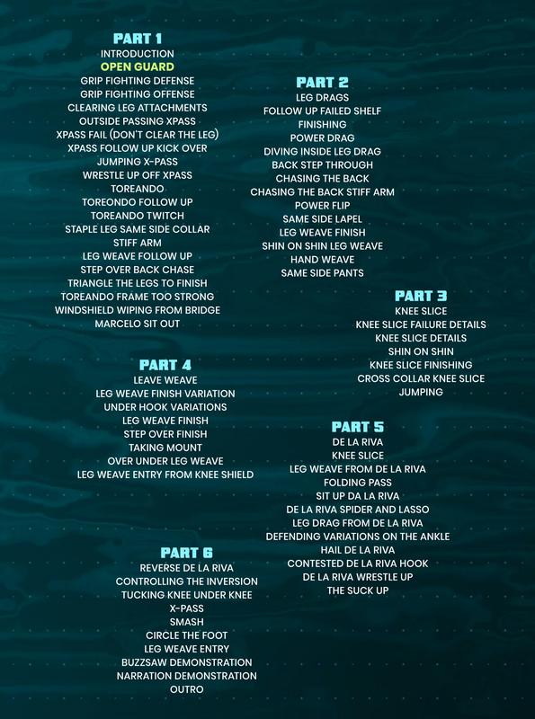 | Destrua guardas abertos com o sistema de passagem de serra elétrica de Andrew Wiltse que qualquer um pode usar para começar a esmagar e cortar os jogadores de baixo para cima. · Desligue o De La Riva reverso e o De La Riva tradicional enquanto Andrew mostra os conceitos de luta e posicionamento para ficar seguro e controlar a luta enquanto você configura os passes · Use cortes de joelho, toreando, x-pass, trama de pernas e muito mais para um sistema de passes abrangente que funciona junto com o sistema que Andrew mostra · O estilo de Andrew pode ajudar qualquer pessoa a aprender uma melhor luta de pegada, posicionamento de topo e mecânica de passagem de guarda, bem como como usar e combinar movimentos para efeito máximo · Finalize passes no controle lateral, na montada ou nas costas com as técnicas de Andrew para transformar suas reações em posições ainda melhores para você