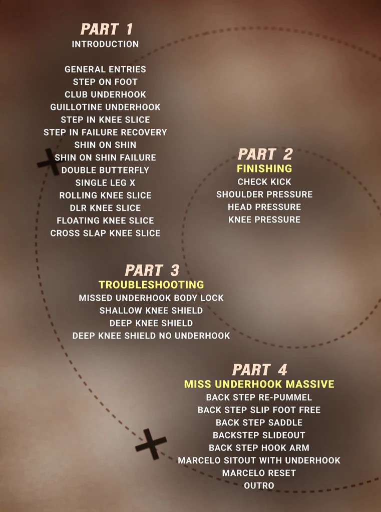 ·       Use o deslizamento de joelho em várias posições superiores, incluindo meia guarda, perna única X, De La Riva e muito mais