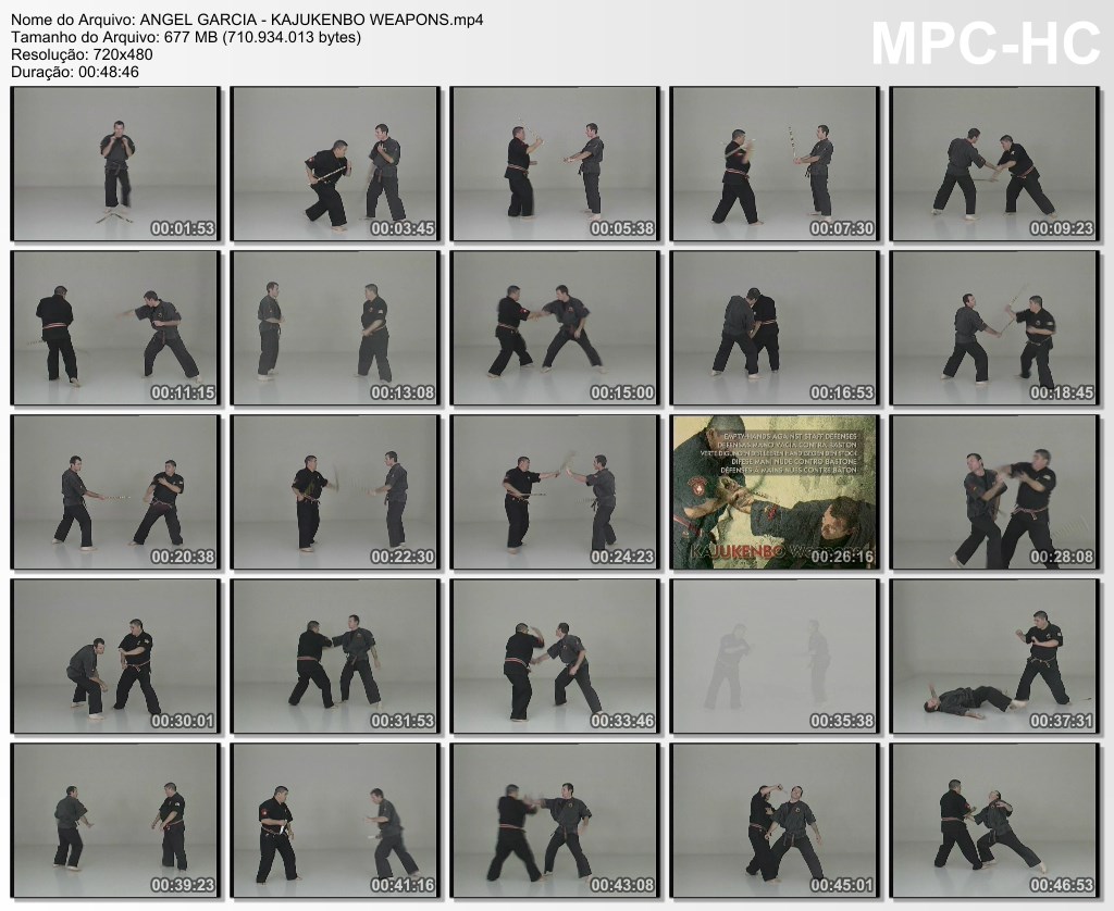| Angel Garcia, 9º Dan e máximo representante do Kajukenbo na Europa, mostra-nos uma parte essencial desta Arte: trabalhar com armas. Estudaremos os movimentos, esquivas, contra-ataques, ângulos de golpe, exercícios de fluidez, bloqueios, desarmes e combinações de golpes para passar às técnicas de defesa pessoal: bastão contra bastão, mãos vazias contra bastão, trabalho com bastão duplo, mãos vazias contra faca e faca contra faca. Técnicas estruturadas em função da distância e da trajectória da arma, e cuja solução tem de ser natural, simples, directa e explosiva, porque neste tipo de situações não há segundas oportunidades.