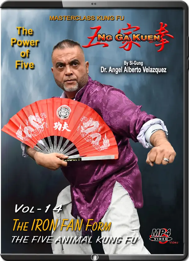 (Five Animals Kung Fu/Five Family Fist) Kung Fu Master Si-Gung Dr. Angel Velazquez is a disciple of Grand Master Seming Ma. Si-Gung Velazquez is a 8 time Hall of Fame inductee by the MA World Federation, MA History Museum & USA MA Hall of Fame. Awards range from Competitor of the Year, Best MA School of the Year to Lifetime Achievement in Martial Arts. Martial Arts Recognitions Awarded by: California State Senator Bill Emerson, US Senator Barbara Boxer, California State Senator Gloria Romero & California Legislature Assemblyman John Benoi. Angel’s Black Tiger Academy is a Five-Star-Rated Martial Arts Institution in Kung Fu Shaolin 5 Animals System in the State of California. Master Velazquez’s Titles outside of Martial Arts include: Doctor in Chiropractic Medicine (Summa Cum Laude). Master of Education in Sports Management (Summa Cum Laude) and Master in Business Administration (Summa Cum Laude). Currently Si-Gung holds a 7th Degree Black Sash by the MA Masters World Federation and he teaches at his own school “Angel’s Black Tiger Kung Fu Academy” (74 W Ramsey St # A, Banning, CA 92220). Vol-14 The IRON FAN Form Includes Front & Side Views, Slow Motion, Explanations, Practical Application and much more! TRT: 31 minutes Ng Ga Kuen, também conhecido como Kung Fu das Cinco Famílias/Cinco Animais ou Punho das Cinco Famílias, é uma importante arte marcial tradicional do sul da China, cujas origens remontam aos Templos Shaolin da China. Ng Ga Kuen pode ser traduzido como “Boxe/Punho das Cinco Famílias”. Como o nome indica, distingue-se por reunir técnicas de cinco estilos familiares diferentes: Choy Gar, Li Gar, Mok Gar, Fut Gar e Hung Gar, aproveitando o melhor de cada estilo para criar um sistema muito completo. Também incorpora técnicas e formas dos cinco lendários animais de Shaolin: o Tigre, o Dragão, o Leopardo, a Serpente e a Garça. |