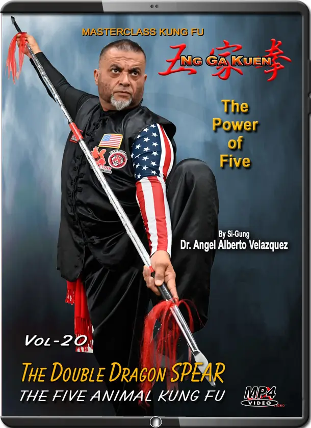 (Five Animals Kung Fu/Five Family Fist) Kung Fu Master Si-Gung Dr. Angel Velazquez is a disciple of Grand Master Seming Ma. Si-Gung Velazquez is a 8 time Hall of Fame inductee by the MA World Federation, MA History Museum & USA MA Hall of Fame. Awards range from Competitor of the Year, Best MA School of the Year to Lifetime Achievement in Martial Arts. Martial Arts Recognitions Awarded by: California State Senator Bill Emerson, US Senator Barbara Boxer, California State Senator Gloria Romero & California Legislature Assemblyman John Benoi. Angel’s Black Tiger Academy is a Five-Star-Rated Martial Arts Institution in Kung Fu Shaolin 5 Animals System in the State of California. Master Velazquez’s Titles outside of Martial Arts include: Doctor in Chiropractic Medicine (Summa Cum Laude). Master of Education in Sports Management (Summa Cum Laude) and Master in Business Administration (Summa Cum Laude). Currently Si-Gung holds a 7th Degree Black Sash by the MA Masters World Federation and he teaches at his own school “Angel’s Black Tiger Kung Fu Academy” (74 W Ramsey St # A, Banning, CA 92220). Vol-20 The Double Drago Spear – Includes Front & Side Views, Slow Motion, Explanations, Practical, Key Points, Application and much more! Ng Ga Kuen, também conhecido como Kung Fu das Cinco Famílias/Cinco Animais ou Punho das Cinco Famílias, é uma importante arte marcial tradicional do sul da China, cujas origens remontam aos Templos Shaolin da China. Ng Ga Kuen pode ser traduzido como “Boxe/Punho das Cinco Famílias”. Como o nome indica, distingue-se por reunir técnicas de cinco estilos familiares diferentes: Choy Gar, Li Gar, Mok Gar, Fut Gar e Hung Gar, aproveitando o melhor de cada estilo para criar um sistema muito completo. Também incorpora técnicas e formas dos cinco lendários animais de Shaolin: o Tigre, o Dragão, o Leopardo, a Serpente e a Garça. |