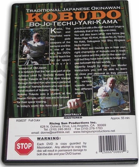 Você também aprenderá outras formas raras como Matsu Higa No Kon; Arakaki No Jo;Techu No Kata; Sakugawa Yari Shu; Kingawa Nicho Kama Tanto Ricci quanto Gaviola são campeões de kobudo por mérito próprio, um na arena tradicional e outro no circuito aberto, mas eles conseguiram preencher essa lacuna entre os dois mundos.