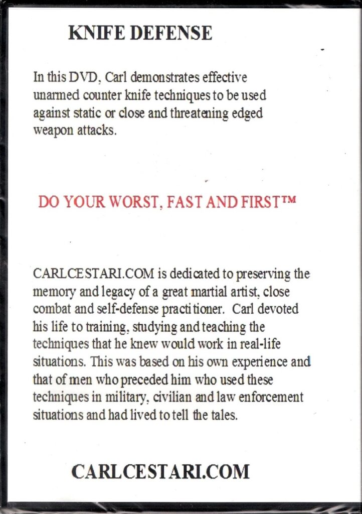 | NESTE DVD, CARL DEMONSTRA TÉCNICAS EFICAZES DE CONTRA FACA NÃO ARMADA A SER USADAS CONTRA ATAQUES DE ARMA ESTÁTICA OU FECHADA E AMEAÇADA Se você quer aprender como lidar com uma ameaça de faca contra você, este é o melhor conhecimento que você jamais obterá. Isso lhe dará grande confiança e você não fará nada estúpido e saberá o que fazer. Não há nenhuma mentira nisso como em tantos outros ensinamentos de autodefesa, ele vai lhe dizer e mostrar como é um ataque de faca real. |