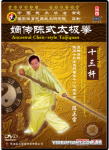 Taiji treze pólo também chamado Taiji treze lança Taiji treze pólo é feito de um grande pólo de mais de três metros adicionar uma ponta de lança chamada longa lança é um grande pólo se sem ponta de lança não há ‘flores’ em grande lança grande pólo de rotina em Taiji armas é um tipo de arma pesada que combina principalmente as técnicas de Taijiquan que a cintura de virilha e braço apertando força de giro e força de giro que precisa de boas habilidades básicas de Taiji precisa de energia interior completa combinando força de cintura de virilha Poderia agitar o grande pólo.