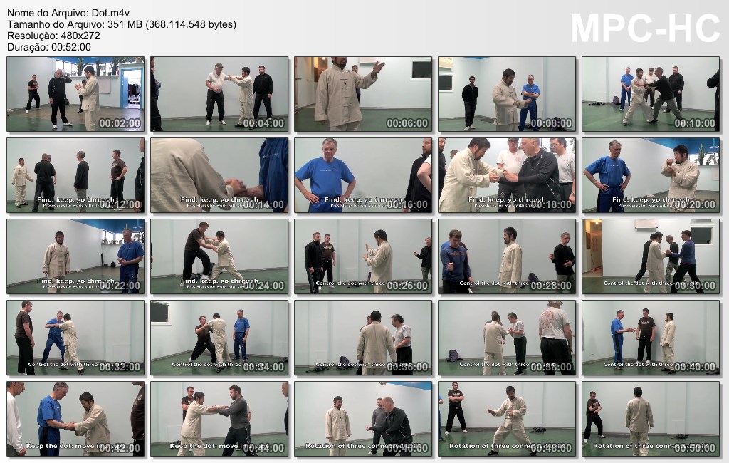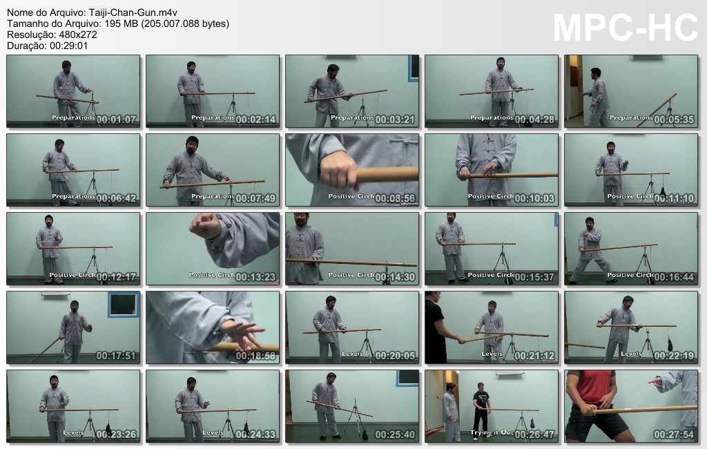 | Dot 1. Beginning. 2. Movement from a dot. 3. Focus on the dot. 4. Break through the dot. 5. Work with the dot. 6. Three-Way split. 7. Keep the dot. 8. The dot: 3 rotations. Author: Chen Zhonghua Length: 50 min. In: English Year: 2010 Difficulty: 4/5 At: Edmonton. Suspended Head Suspended head is a taiji concept that refers to the state of the spine line being erect at all times. When done right, the head is always suspended like being pulled from above or having something underneath it that provides support. Taiji Chan Gun Online Video Author: Chen Zhonghua Length: video one-28 minutes; video two-3 minutes Year: 2010 Language: English