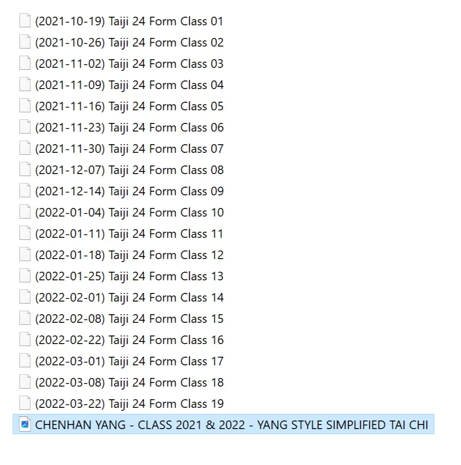 CHENHAN YANG – CLASS 2021 & 2022 – YANG STYLE SIMPLIFIED TAI CHI