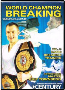 | Rompimento do campeão mundial conforme instruído por Master Chip Townsend Volume 1: Treinamento básico de rompimento O Ele aborda os estilos de treinamento, aquecimento e alongamento e ensina a você o básico de chute frontal, golpe com a palma da mão, chute lateral, golpe reverso, round house e golpe invertido. |