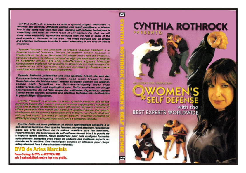 Cynthia Rothrock, uma das estrelas de filmes de ação mais conhecidos em Hollywood, apresenta uma equipe especial dedicada à defesa das mulheres.Olha particularmente adequados algumas fórmulas com a ajuda de alguns dos melhores especialistas mundiais nesta área: Vincent Lyn (Gar Kung-Fu Ling), Avi Nardia (Lotar Kapap), Jim Wagner (Reality-Based Proteção Pessoal), Chris Saint Jacques (Guarda-costas, Police & Security), Evan Pantazi (Kyusho-Jitsu), Salvatore Oliva (Progressive Fighting System), o coronel Sanchis (Jukaikido), Glenn Wilson (Kung-Fu Tao Pai Lum) e Victor Gutierrez (VING TSUN). Técnicas simples e eficazes para responder adequadamente a situações de violência. Idioma: Inglês, alemão, frensh, spain, italiano