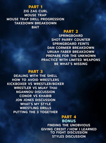 | Veja como Dominick desenvolveu um dos estilos mais complicados e estudados de todo o MMA enquanto explica o método para sua loucura · Use exercícios para construir seu footwork e defina armadilhas como Dominick, incluindo o zig zag curl, a ratoeira e muito mais · Aprenda a lidar com todos os estilos de lutador enquanto Dominick explica como abordar lutadores, atacantes e muito mais com exemplos de lutas históricas · Fique por trás da luta enquanto Dominick explica as técnicas e fundamentos por trás de lutas e lutadores famosos como Urijah Faber, Daniel Cormier e Jon Jones