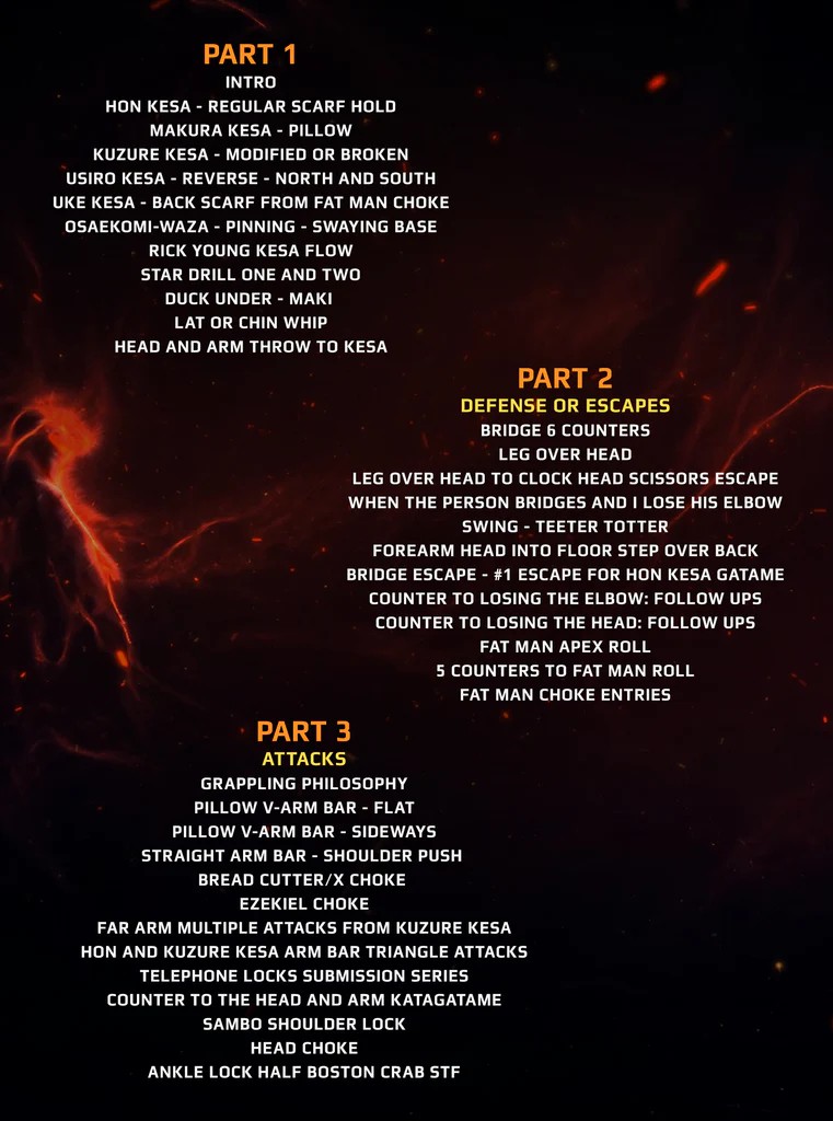 | Domine mais de 2 horas de ataques Killer Kesa Gatame com o pioneiro dos esportes de combate Erik Paulson e aprenda as maneiras de definir e vencer a competição! · Junte-se ao lendário ícone dos esportes de combate Erik Paulson para um mergulho profundo em uma das posições mais incompreendidas do grappling e revolucione seu jogo de kesa gatame · Deixe Paulson abrir seus olhos para as muitas utilidades dessa posição frequentemente subutilizada · Aprenda vários ataques e dezenas de estratégias para finalizar, manter a posição, contra-atacar ações defensivas e muito mais, tudo com uma das figuras mais reconhecidas do grappling no comando · Fixe, controle e ataque de kesa gatame com técnicas e orientações que você não encontrará em nenhum outro lugar · Coloque seus oponentes em perigo constante com a série de finalizações de bloqueio de telefone, chave de ombro sambo, estrangulamento de ezequiel, chave de braço reta e muito mais, enquanto você atravessa esta série única · Otimize sua caixa de ferramentas e adicione esta perigosa nova camada de domínio ao seu conjunto de habilidades com um dos lutadores veteranos mais respeitados do mundo · Seja você um iniciante ou um grappler veterano, Paulson irá ajudá-lo a obter uma maior compreensão da posição kesa gatame e ajudá-lo a reforçar seu arsenal com suas técnicas, exercícios e estratégias comprovadamente eficazes.
