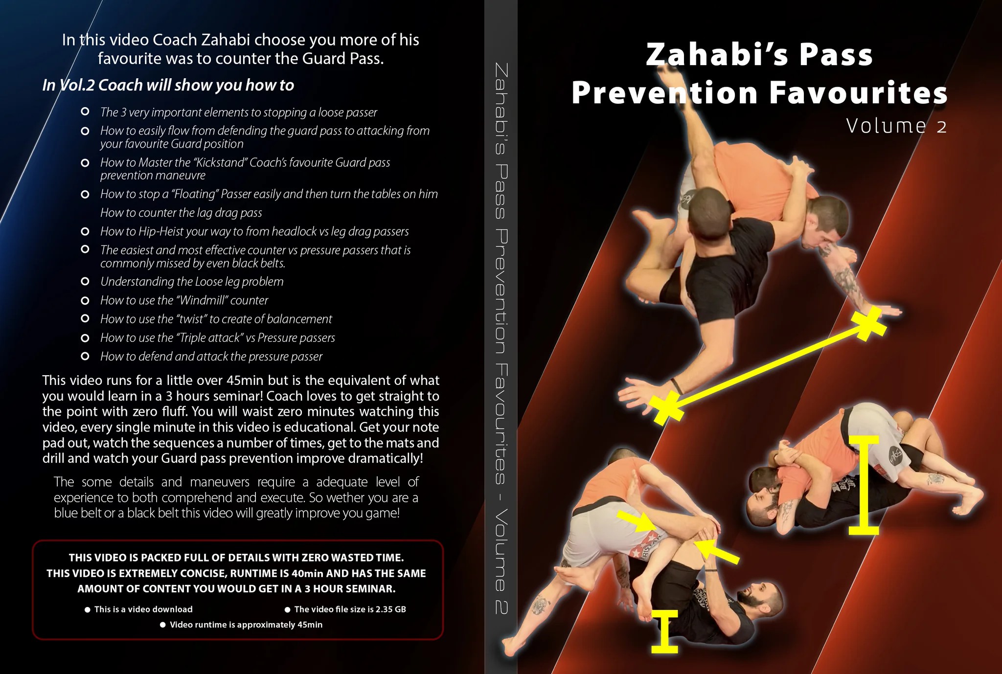 Neste vídeo, o treinador Zahabi mostra mais de suas formas favoritas de contra-atacar a passagem de guarda. No Vol.2, o Coach mostrará como