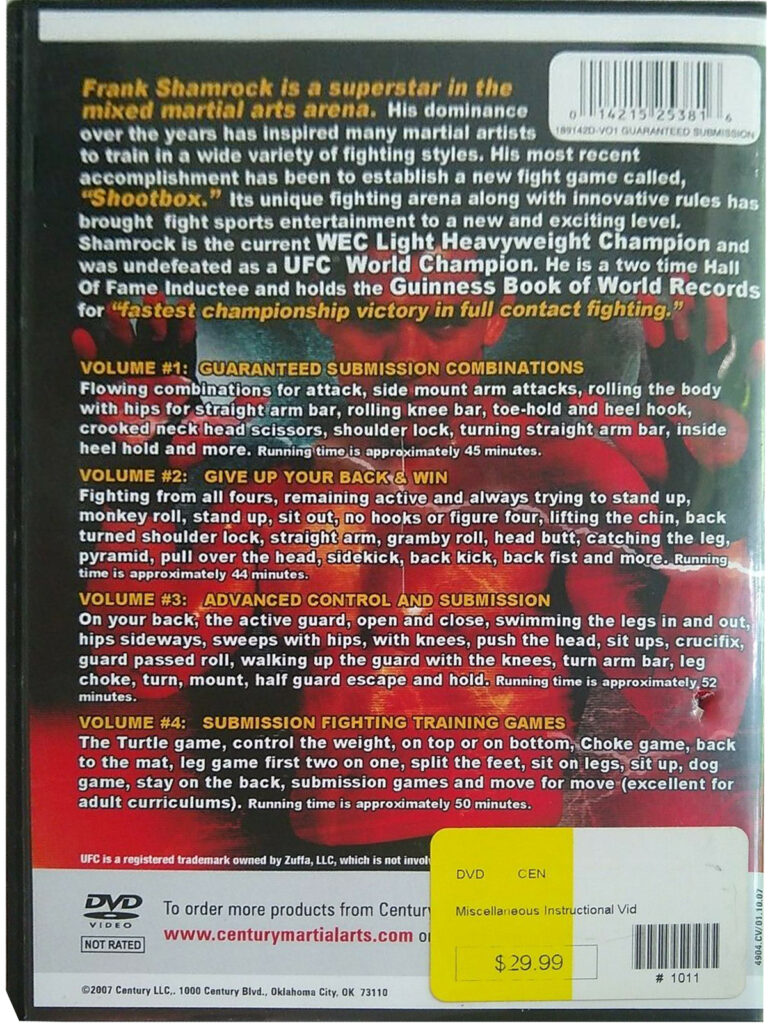 | Curso Avançado de dor e estrangulamentos no chão. Grappling, é uma luta sem kimono (jaqueta e calça). Frank Shamrock – ex-campeão do UFC na média (a classificação usual de luz) de peso. Coleção dos 4 volumes inclui: Frank Shamrock – As inscrições avançadas – Vol 1 – Garantido Submission Combinação |