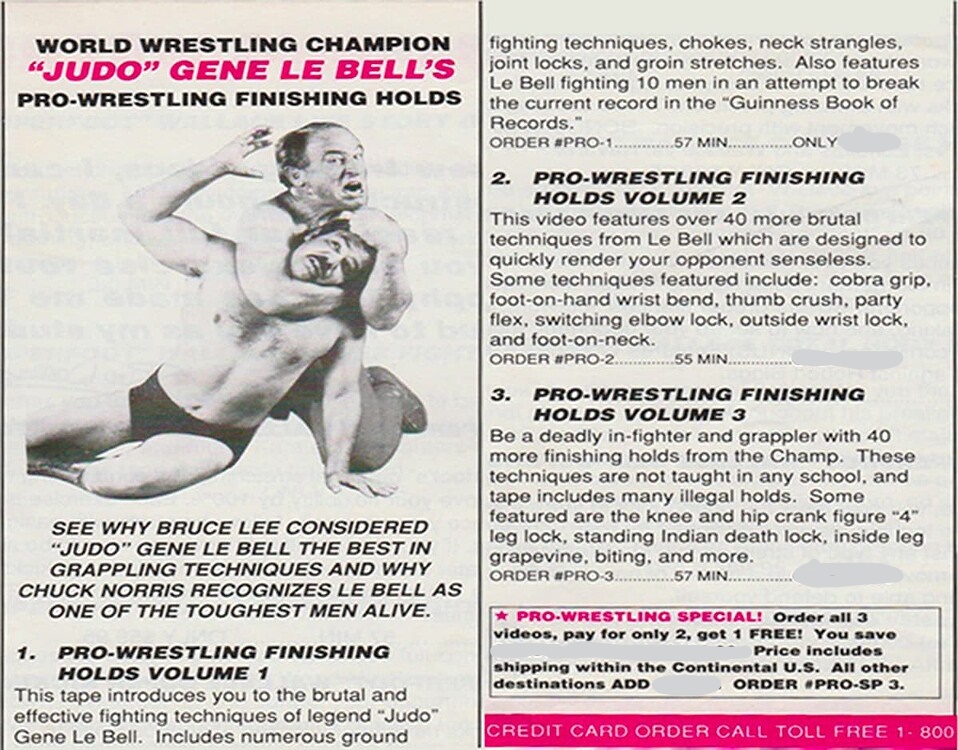 Mesmo que você não conheça a grandeza de “Judo” Gene Lebell, acho que você vai querer ver isso. Nem preciso explicar quem é o Gene para você; a música-tema desta fita é “A LENDA DE GENE LEBELL”, então acho que você está coberto. “Judô” Gene nos mostra, os sortudos espectadores, uma variedade de manobras de finalização, incluindo o temido DOUBLE OUCH. Pobre Mando Guerrero!