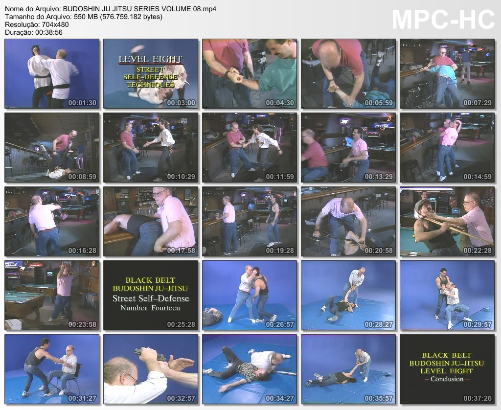 | Vol 8: AUTODEFESA DE RUA– Este DVD demonstra como as técnicas podem ser modificadas e combinadas de maneiras únicas, dependendo do tipo de ataque e do ambiente ao seu redor. Este DVD deve ser considerado parte inerente do seu treinamento de Shodan no Budoshin Ju-Jitsu. Isso o ajudará a desenvolver uma consciência de seu conhecimento da arte e como lidar com vários atacantes, defender-se sentado em uma cadeira, como usar uma bengala e outras situações únicas. |