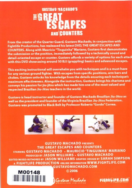 Do criador da Guarda Quarter, Gustavo Machado, em conjunto com Fight life Productions, lançou seu mais recente DVD, grandes fugas e contadores. Junto com Mauricio “Tinguinha” Mariano, Gustavo primeira demonstra a submissão ou a posição, imediatamente seguido por uma fuga tecnicamente correta e detalhista ou balcão. Gustavo oferece uma variedade de opções para cada ataque com este DVD que apresenta cerca de 50 BJJ (luta) básico e escapes avançados.