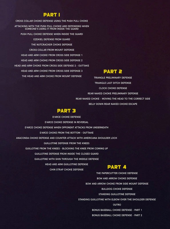 ·         Aprenda a derrotar estrangulamentos devastadores como triângulo, gola cruzada, bulldog, Ezekiel e MAIS!