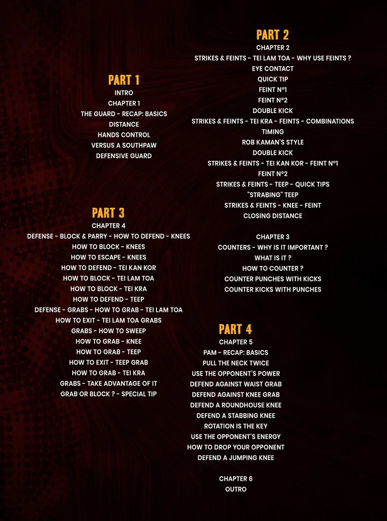 | Vá de bom a ótimo com o enigmático e altamente exigido treinador de boxe tailandês francês Jean-Charles Skarbowsky · Este curso baseia-se no básico para ensinar ataques e defesas de muay thai mais avançados e eficazes · Finta, golpeia e contra-ataca com as dicas de Jean-Charles para lançar ataques pouco ortodoxos, mas eficazes · Aprenda com o treinador marcante que artistas marciais como Georges St. Pierre e John Danaher confiam para instruir seus atletas · Use o clinche, a especialidade de Jean-Charles, com seu guia para desequilibrar e dominar oponentes