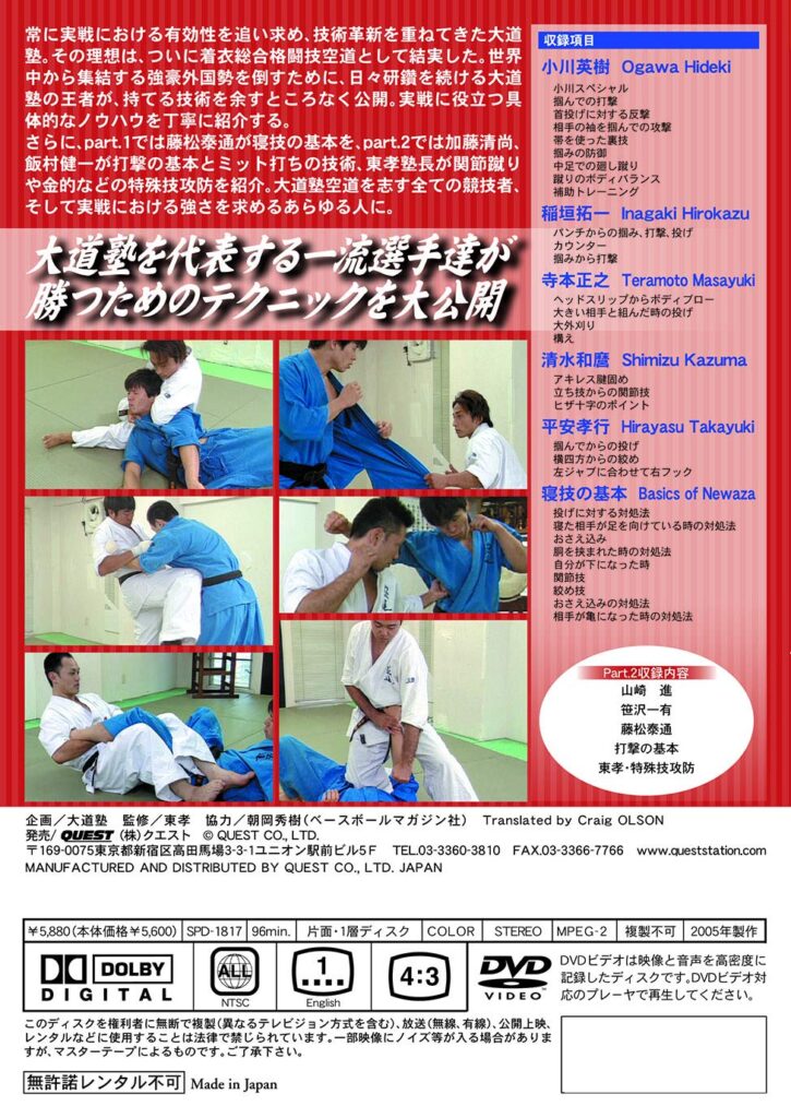 | Kudo é uma nova arte marcial total oriunda da Daidojuku (organização de Karate Full Contact) e composta por Judô, Jiu-Jitsu e Karate Full Contact. Masayuki Teramoto, Kazuma Shimizu e Takayuki Hirayasu. Vol.1 apresenta Noções básicas de Newaza. Neste DVD, você aprenderá com os melhores instrutores de Kudo, incluindo Hideki Ogawa (1º Campeão Mundial de Kudo de peso leve), Hirokazu Inagaki, Masayuki Teramoto, Kazuma Shimizu e Takayuki Hirayasu. Idioma: Japonês Tempo de execução: 96 min.