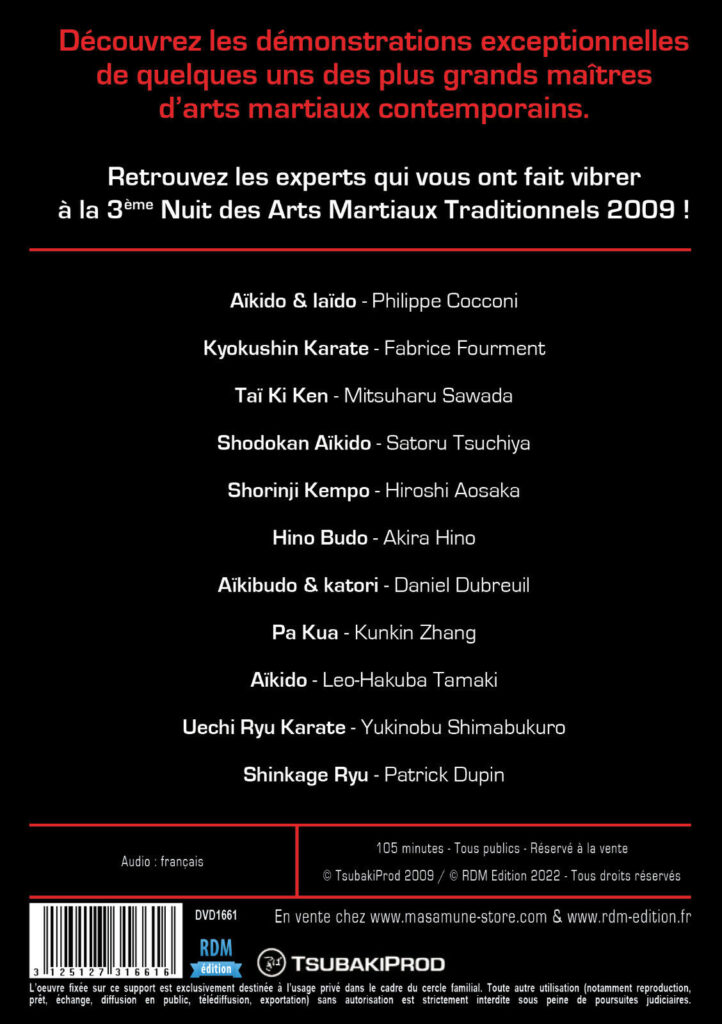 Aikido & Iaïdo – Philippe Cocconi / Kyokushin Karate – Fabrice Fourment / Taï Ki Ken – Mitsuharu Sawada / Shodokan Aïkido – Satoru Tsuchiya / Shorinji Kempo – Hiroshi Aosaka / Hino Budo – Akira Hino / Aïkibudo & katori – Daniel Dubreuil / Pa Kua – Kunkin Zhang / Aikido – Leo-Hakuba Tamaki / Uechi Ryu Karate – Yukinobu Shimabukuro / Shinkage Ryu – Patrick Dupi