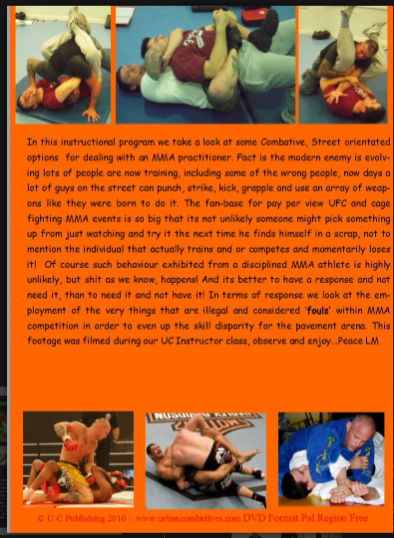 COUNTER MMAR$ 20,00 REAISNeste programa de instrução, vamos dar uma olhada em algumas opções, combativos rua orientada para lidar com um praticante de MMA. Fato é, o inimigo moderno está evoluindo. Muita gente está treinando agora – incluindo algumas das pessoas erradas. Hoje em dia, um monte de caras na rua pode perfurar, greve, chutar, agarrar e usar uma variedade de armas, como eles nasceram para fazê-lo. A base de fãs para Pay Per View UFC e eventos de MMA de combate a gaiola é tão grande que não é improvável que alguém pode pegar alguma coisa a partir de apenas assistindo e experimentá-lo da próxima vez que ele se encontra em uma sucata. Sem mencionar o indivíduo que, na verdade, treina e / ou concorre e momentaneamente perde. É claro que esse tipo de comportamento exibido por um atleta de MMA disciplinado é altamente improvável – mas merda, como sabemos, acontece! E é melhor ter uma resposta e não precisa dele, do que precisar de uma resposta e não tê-lo. Em termos de resposta, olhamos para o emprego das mesmas coisas que são ‘faltas’ ilegais e considerado dentro MMA comptetition, a fim de even-se a disparidade de perícia para a arena de pavimento. Este filme foi filmado durante a nossa classe Instructor UC – observar e desfrutar …  |