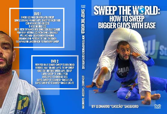 | Aprenda o sistema simples que permite que um peso pena varra facilmente faixas pretas de alto nível 100 libras mais pesadas com facilidade · “A Máquina de Ouro Duplo” Leonardo “Cascao” Saggioro / quase sempre ganha ouro duplo · Cascao é um peso pena e um dos companheiros de treino de Bernardo Faria · Seu jogo é seguro, eficaz e fácil de implementar · Ele é muito parecido com o Bernardo Faria, tem algumas raspagens que os adversários sabem que estão chegando e ainda consegue · Cascao subiu ao pódio inúmeras vezes nos mundiais da faixa-preta adulta