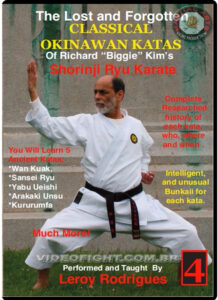 | Revisões editoriais The Lost Forgotten Classic Okinawan Shorinji Ryu Karate Katas Leroy Rodrigues é um estudante original de Richard Biggie Kim em São Francisco e estudante de Toyama Kanken, Kinjo Hiroshi, Gogen Yamaguchi e Yoshida Kotaro. Ele demonstra e ensina essas katas perdidas e esquecidas do Shorinji Ryu Karate. Os katas incluem a história, bunkai e são demonstrados em câmera lenta e em ritmo de performance. As katas (a primeira vez em DVD) são as formas originais que vieram de Okinawa para o Japão desde os anos 1700. Eles incluem Wan Kuak, Sansei Ru, Yabu Useshi, Arakaki Unsu e Kururumfa.. |