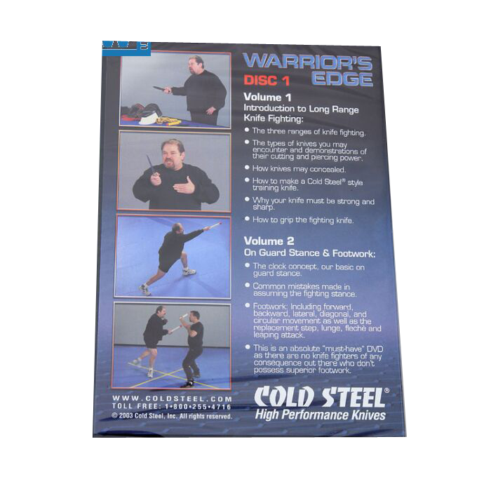 Volume 1, Introdução ao Long Range Faca de combate:Os assuntos abordados serão três faixas de luta da faca, e os tipos de facas que você pode encontrar e demonstrações de seu poder de corte e perfuração. Outros tópicos incluem, como facas pode escondido, como fazer com que uma faca de treinamento estilo Fria Steel®, por sua faca deve ser forte e afiada, e como segurar a faca de combate. Volume 2, On Guard Stance & Footwork: Esta fita ensina o conceito de relógio, a nossa base na posição de guarda, erros comuns cometidos em assumir a posição de combate, e footwork, inclusive para a frente, para trás, lateral, diagonal, e circular movimento, bem como a etapa de substituição, estocada, flecha e pulando ataque. Este é um absoluto deve ter DVD como não existem lutadores faca de qualquer conseqüência por aí que donâ € ™ t possuem footwork superior. |