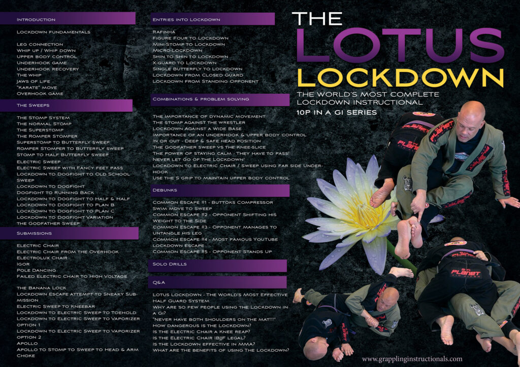 O Lotus Lockdown permite que iniciantes ou praticantes menos técnicos dificultem, e muito, as coisas para os mais graduados. A técnica diminui o ritmo da luta, frustra o adversário e prepara para raspagens e finalizações!