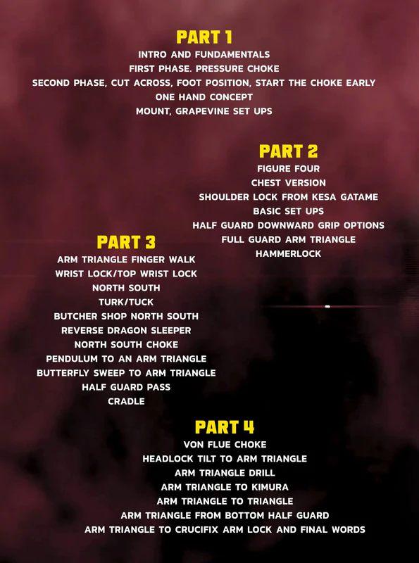 | Neil Melanson está de volta com outra série magistral dedicada a armar a maestria do estrangulamento do triângulo. Aprenda os princípios do estrangulamento, das armadilhas e dos detalhes de finalização que farão do triângulo de mão uma de suas armas mais perigosas! Grappling é um esporte único onde existem inúmeras variáveis para qualquer situação. Neil simplifica as coisas, dando-lhe opções para começar a trabalhar imediatamente. Aprenda a manter seu oponente sob constante pressão e coação. Neil Melanson já trabalhou com atletas de TODOS os níveis, incluindo os candidatos ao UFC de alto nível. Nesse período, ele viu adaptações e variações que levaram ao sucesso de TODOS. Off With They Head tem variações exclusivas do triângulo de mão que fornecerá infinitas opções para encontrar sua maneira favorita de finalizar. Como um bônus adicional, você aprenderá a fazer a transição de Arm Triangles para outros envios INTEIRAMENTE! No típico estilo Melanson, ele pega uma arma já eficaz e adiciona alguns ataques únicos que se apresentarão em uma tentativa de defender o Triângulo do Mão. Antes que você perceba, você será capaz de ameaçar com Triângulos de Mão, Kimuras, Armbar Crucifixo e MAIS!