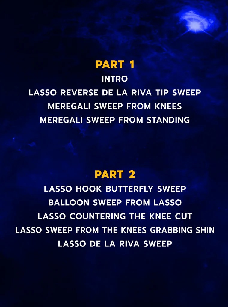Domine os segredos ocultos da Guarda Lasso com o Campeão Mundial Absoluto Faixa Preta Nicholas Meregali, enquanto ele mostra seu sistema para a Guarda Lasso Deep & Flow – incluindo sua varredura imparável de Meregali