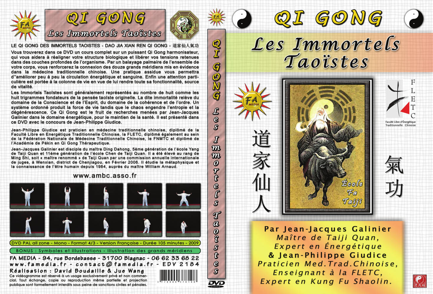 Os imortais taoístas são geralmente representados no número oito como os oito trigramas fundadores do pensamento taoísta original. A assim chamada imortalidade pertence ao domínio da Consciência e do Espírito, o domínio da coerência e da ordem. Um sistema ordenado produz a força vital enquanto o caos gera entropia e degeneração. Este Qi Gong é o resultado de uma pesquisa conduzida por Jean-Jacques Galinier no campo da energia, para a manutenção da saúde. É apresentado neste vídeo com a ajuda de Jean-Philippe Giudice.
