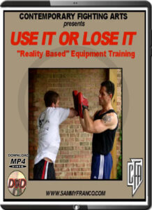 Este DVD instrucional dinâmico lhe ensinará passo a passo como selecionar e usar o equipamento certo de artes marciais e autodefesa para treinamento de autodefesa baseado na realidade. Neste DVD instrucional de 90 minutos, o especialista em autodefesa, Sammy Franco, aborda as seguintes peças de equipamento de treino de treino: