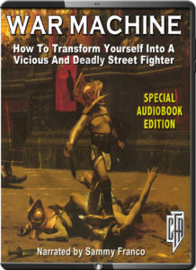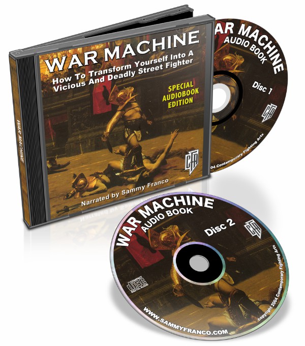 The War Machine CD Box Set (Audio Book) Narrado por Sammy Franco – O programa de audiolivro War Machine mudará você para o resto da sua vida! Este programa de treinamento exclusivo é projetado especificamente para transformá-lo em um lutador de rua cruel e mortal. Quando seguido adequadamente, War Machine forjará sua mente, corpo e espírito em ferro. Uma vez armado com as ferramentas mentais e físicas da War Machine, você se tornará um guerreiro forte e confiante que pode lidar com quase tudo que a vida possa lhe lançar. Em essência, War Machine é um modo de vida. Poderoso, intenso e difícil. O audiolivro War Machine inclui estes capítulos: