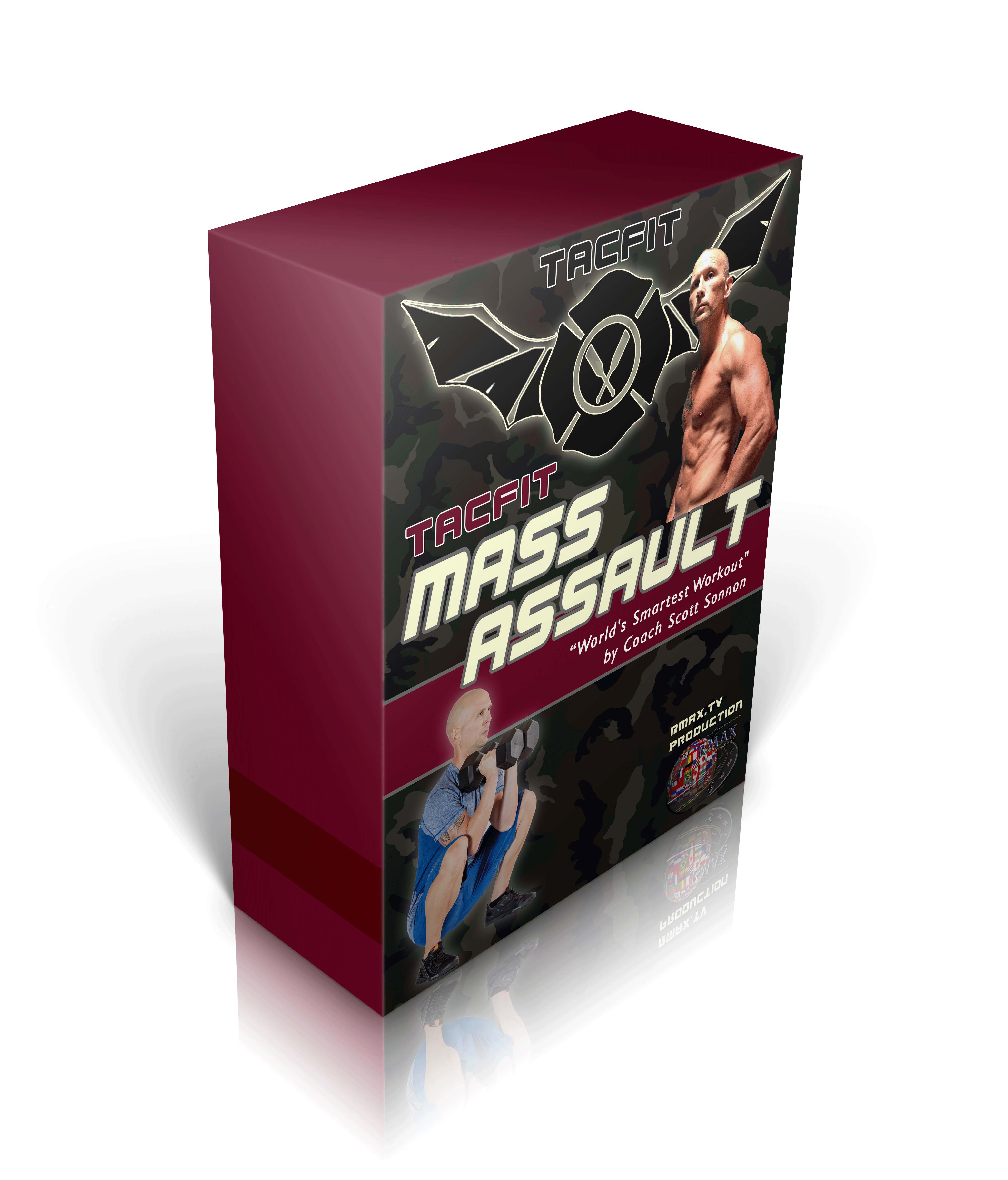 TACFIT Mass Assault foi concebido para dar um tapa muscular sobre os ossos da maneira mais rápida possível através da criação de um “ambiente anabólico” natural para promover o crescimento. A primeira fase deste programa de dois meses usa halteres (com quatro níveis de dificuldade para cada exercício), e fase dois utiliza uma esfera de medicina e exercícios de peso corporal (com três níveis de dificuldade para cada exercício) – 4 meses completos de formação se completa a cada nível do programa. Portátil crescimento muscular funcional para os heróis de ação do mundo real.