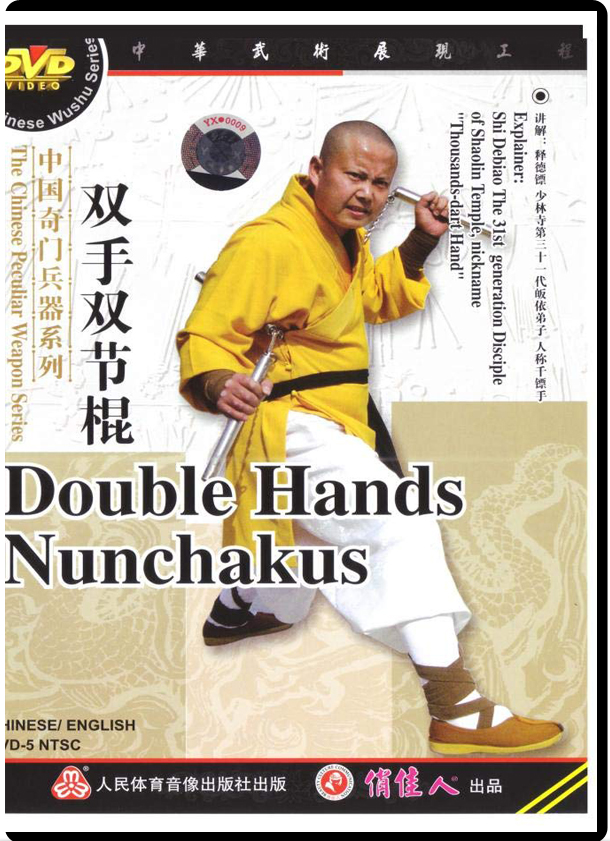 | Shi Debiao, o discípulo de 31ª geração do Templo Shaolin, pessoa que dissemos que pode lançar milhares de dardos de uma vez. Ele aprendeu Wushu herdado de seus ancestrais quando era apenas um garotinho, e então ele tratou o mestre Suxi, o abade do Templo Shaolin como seu professor, e começou a aprender o autêntico Shaolin Kongfu. Ele se juntou a este Kung fu com todos os tipos de armas e fazer essas armas para elevar a um novo nível, e ele é elogiado pelo pessoal e pelo público da área de Wushu. É bom praticar este conjunto para manter o corpo ágil ao usar as armas ocultas. A única coisa mais difícil do que usar o nunchakus é aprender a usar dois pares ao mesmo tempo. Neste vídeo em DVD instrutivo, o Mestre Shi Debiao mostrará como usar esta arma emocionante em cada mão com um efeito mortal. · Palestrante: Shi Debiao · Formato: MP4 · Língua que fala: chinês · Subtítulo: Inglês / Chinês · Duração: 53’48 “