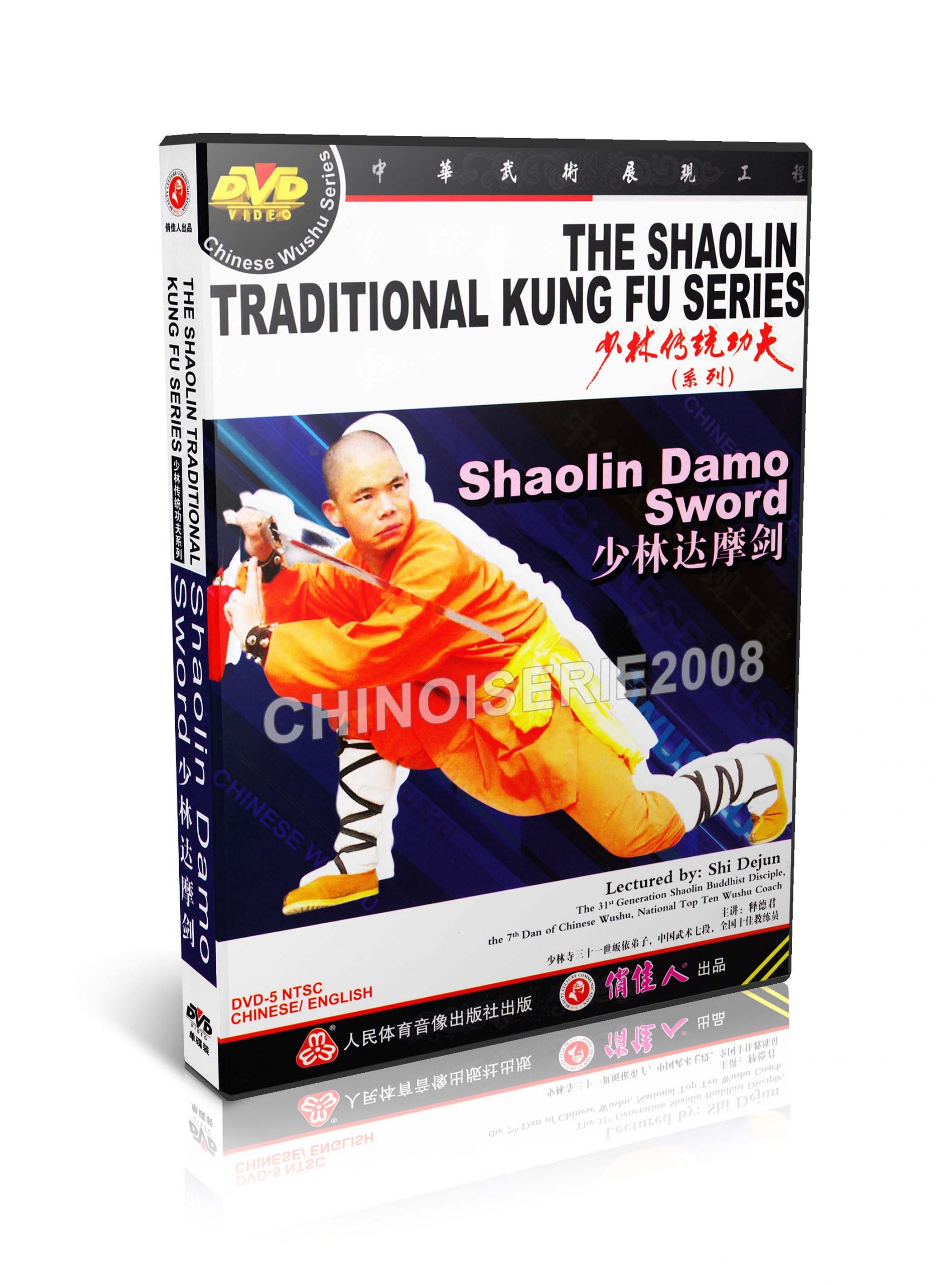 | Shaolin Damo Sword é uma excelente rotina tradicional de Shaolin wushu, suas principais habilidades são cortar, apontar, uppercut, espalhar, torcer, bloquear, inclinar, pendurar, perfurar, cortar e varrer e floreio de corte de pulso. Ao demonstrar, precisa da articulação de dentro e de fora, a coordenação de espírito e forma, mover o corpo ao colocar as posturas, mudar de forma ao mudar de método, prestar atenção à coordenação entre dedos em espada e métodos de espada, mostrar o beleza aquele movimento da espada como uma fênix voadora, e o poder suave, macio e firme. · Palestrante: Shi Dejun · Formato: MP4 · Língua que fala: chinês · Subtítulo: Inglês / Chinês · Duração: 51’04 “