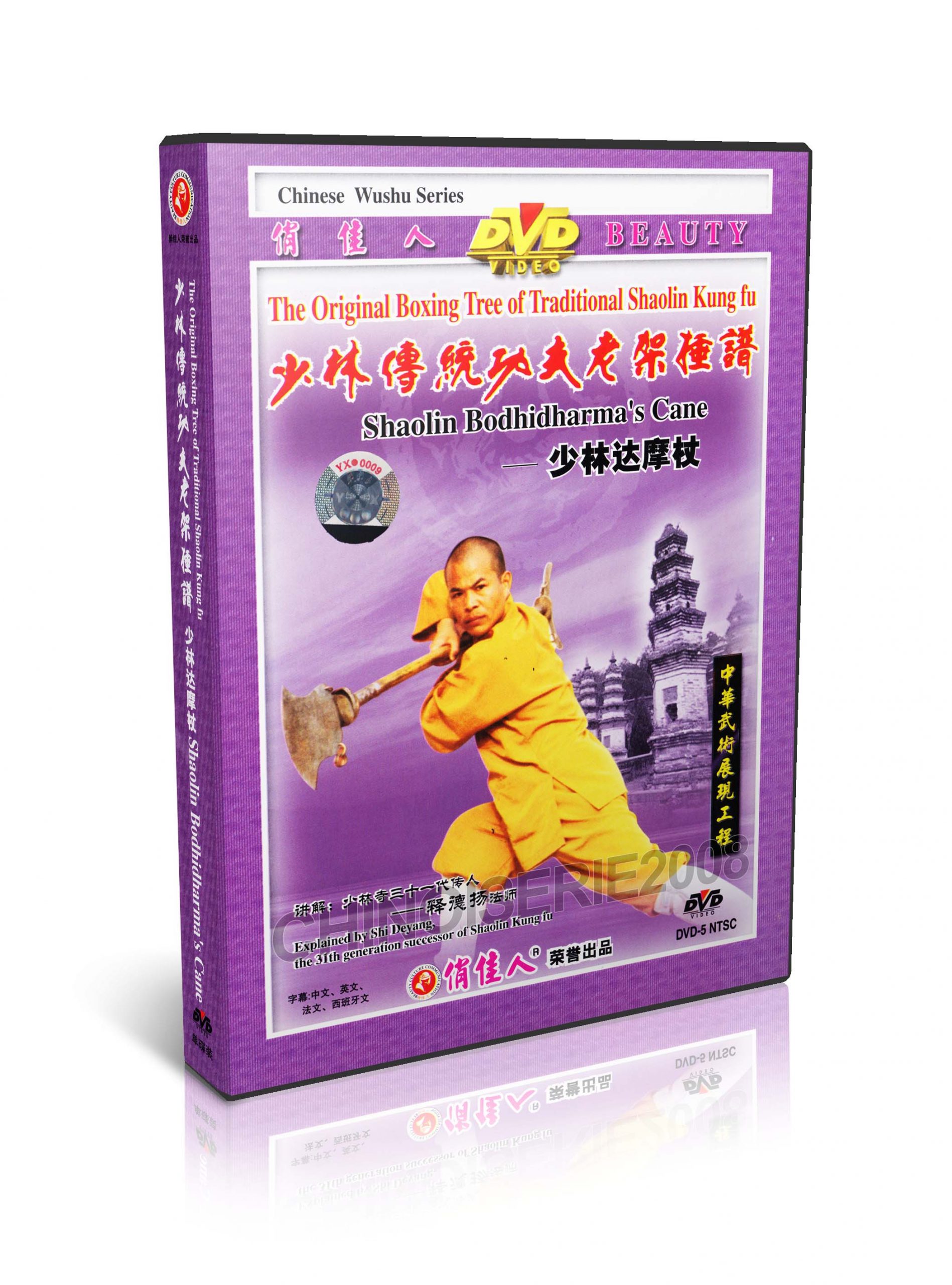 | A vara do Shaolin Bodhidharma é uma das raras armas no Shaolin Wushu. Ela tem um formato único, como uma bengala na mão de um velho. Os movimentos nessa rotina são violentos, vigorosos, simples, naturais e equilibrados. É inteligente e utiliza razoavelmente as técnicas de ataque e defesa, para que possa tanto atacar quanto defender. Essa rotina enfatiza especialmente as técnicas dos olhos. Quando as mãos se movem, os olhos as seguem. força das mãos. · Palestrante: Shi Deyang · Formato: MP4 · Língua que fala: chinês · Subtítulo: Inglês / Chinês · Duração: 44’287 “