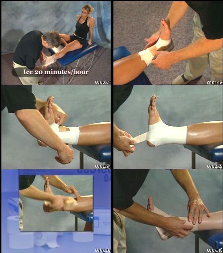 Dr. Perrin também dá conselhos sobre o uso de equipamentos de gravação adequado para lesões específicas, incluindo quando usar fita elástica ou rígida, spray adesivo, moleskin, tiras de fixação, pastilhas de atrito, e underwrap. Ele discute as técnicas taping alternativas para usar para diferentes lesões, por exemplo, a forma de fita de uma entorse de tornozelo com uma inversão contra uma eversão-so o procedimento correto pode ser aplicada.
