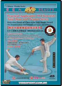 • A 62-forma Chen-estilo Taiji Single Espada retém a essência original de Chen-estilo Taiji única espada, mantendo a elegância e estilo sofisticado. Este conteúdo de rotina mais de 20 métodos de técnicas de espada, tais como empurrar, uppercuting, apontando e assim por diante. Com a cintura como o eixo central do movimento ea energia espiralada de “chan si jin” como seu estilo. Os requisitos são: As técnicas de espada são exatas, ea força é suave. Praticá-lo é tão suave como a garoa, tão poderoso como um raio, tão sensível quanto um gato que ataca o rato, tão firme como um urso andando na grama. Estresse a dureza ou suavidade quando girando e movendo, preste atenção às técnicas de espada, mudar a força pelo corpo. É apropriado para aqueles com habilidades básicas de Wushu.