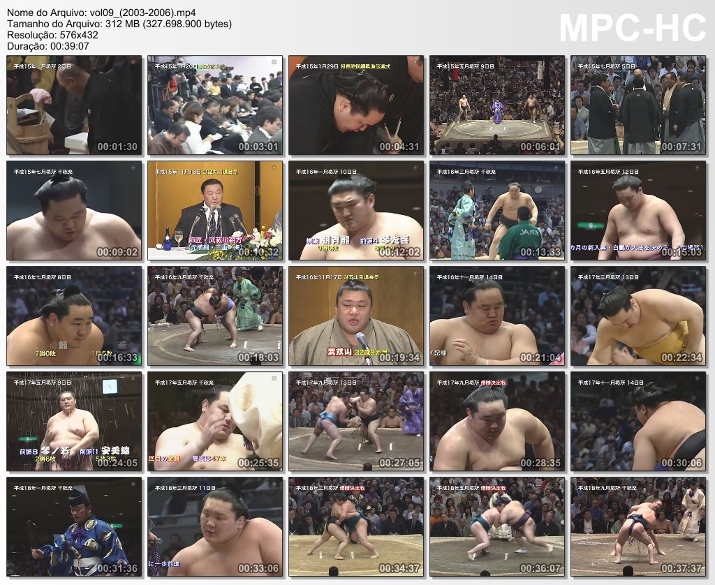 R$ 30,00 REAISArte Nacional de Ozumo em Vídeo Ano de lançamento : 2010 Tipo de esporte : sumô Participantes : sekitori: Yokozuna, ozeki, sekiwake, komusubi… Duração : 40 minutos cada volume Descrição : A série de vídeos japonesa “A Arte Nacional do Sumo em Vídeo” cobre vários períodos do sumô da década de 1930. até os dias atuais. Esse dvd dura em media 40 minutos e é uma compilação de lutas, cerimônias significativas, etc.