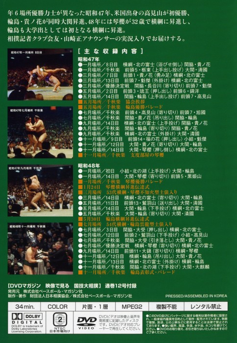 Descrição : A série de vídeos japonesa “A Arte Nacional do Sumo em Vídeo” cobre vários períodos do sumô da década de 1930. até os dias atuais.