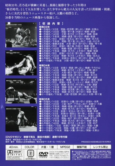 Descrição : A série de vídeos japonesa “A Arte Nacional do Sumo em Vídeo” cobre vários períodos do sumô da década de 1930. até os dias atuais.