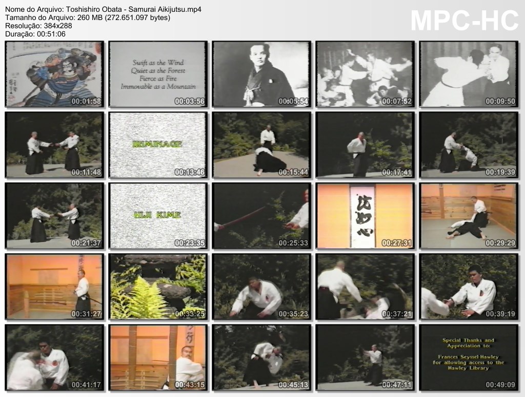 | Este vídeo clássico inclui aikijutsu e taihojutsu (técnicas de apreensão), sojutsu (técnicas de lança), tameshigiri (corte), bojutsu (bastão longo) e muito mais. Esta fita destaca algumas das armas, técnicas e métodos usados pelo bushi do Japão. Filmado no belo dojo do quintal de Bernie Lau em Washington. Filme panorâmico de Aikijujutsu. Técnica demonstra Toshishiro Obata Além das técnicas desarmadas são mostradas técnicas com uma katana, tanto, bo, Yari. |