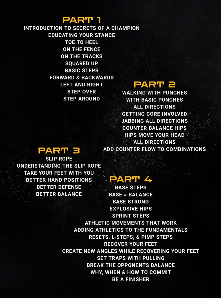| Desvende os segredos para combater o equilíbrio com o guia do treinador de MMA de classe mundial Trevor Wittman para ficar em uma boa posição de ataque para ataque e defesa, incluindo detalhes sobre postura, movimento e como lançar seus chutes · O equilíbrio é a chave para toda boa rebatida, então agora aprenda como você pode controlar o seu o tempo todo com essas habilidades e técnicas do treinador Wittman · Eduque sua postura com estas lições sobre posição corporal e movimentos básicos · Caminhe em todas as direções com seus socos, use passos em L, reinicializações e muito mais, enquanto o treinador Wittman decompõe a arte sutil de se mover enquanto golpeia · Obtenha uma melhor defesa levando seus pés com você usando exercícios e equipamentos como um deslizamento maduro e exercícios de caminhada